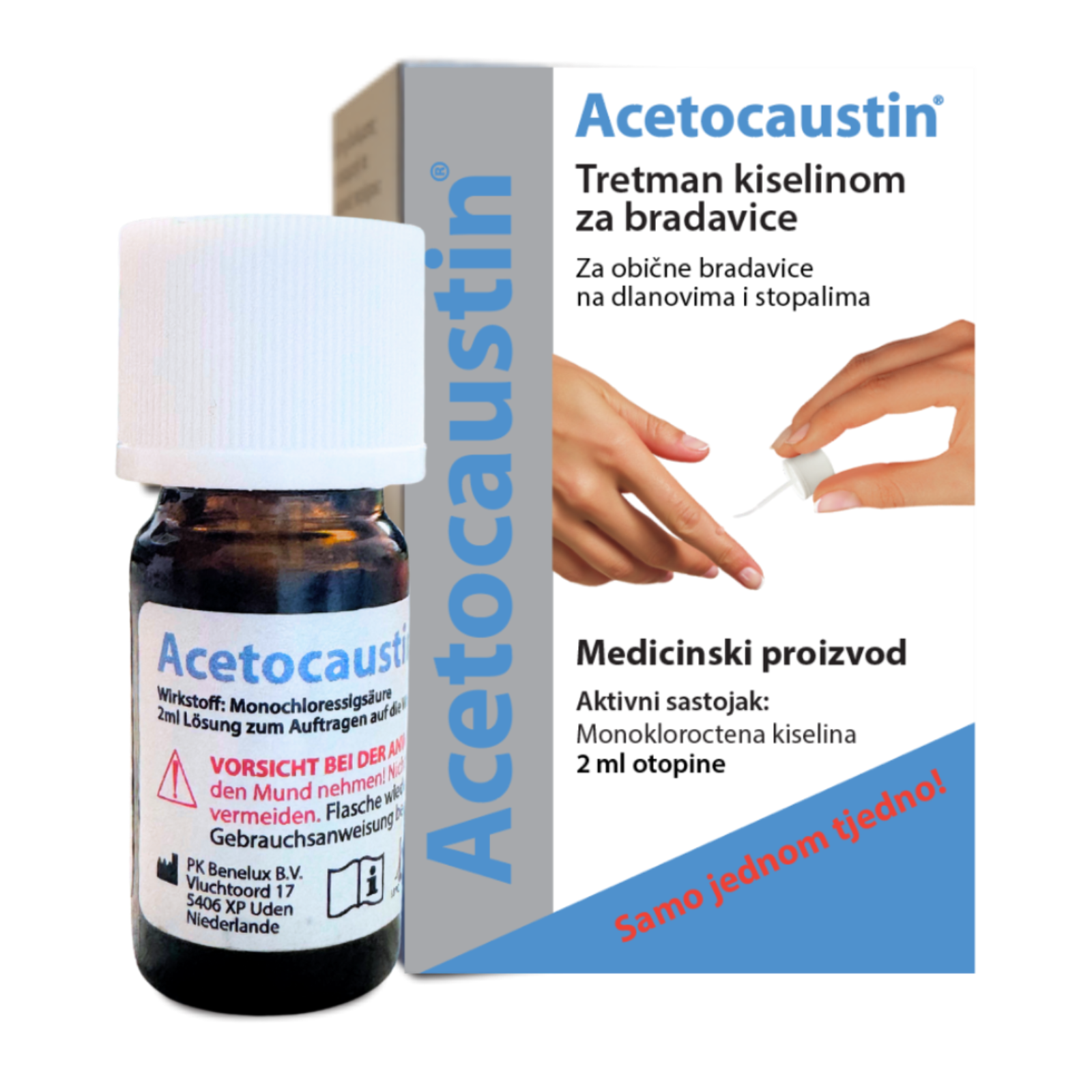 Acetocaustin djeluje izravno na promijenjeno tkivo, ciljajući korijen problema.