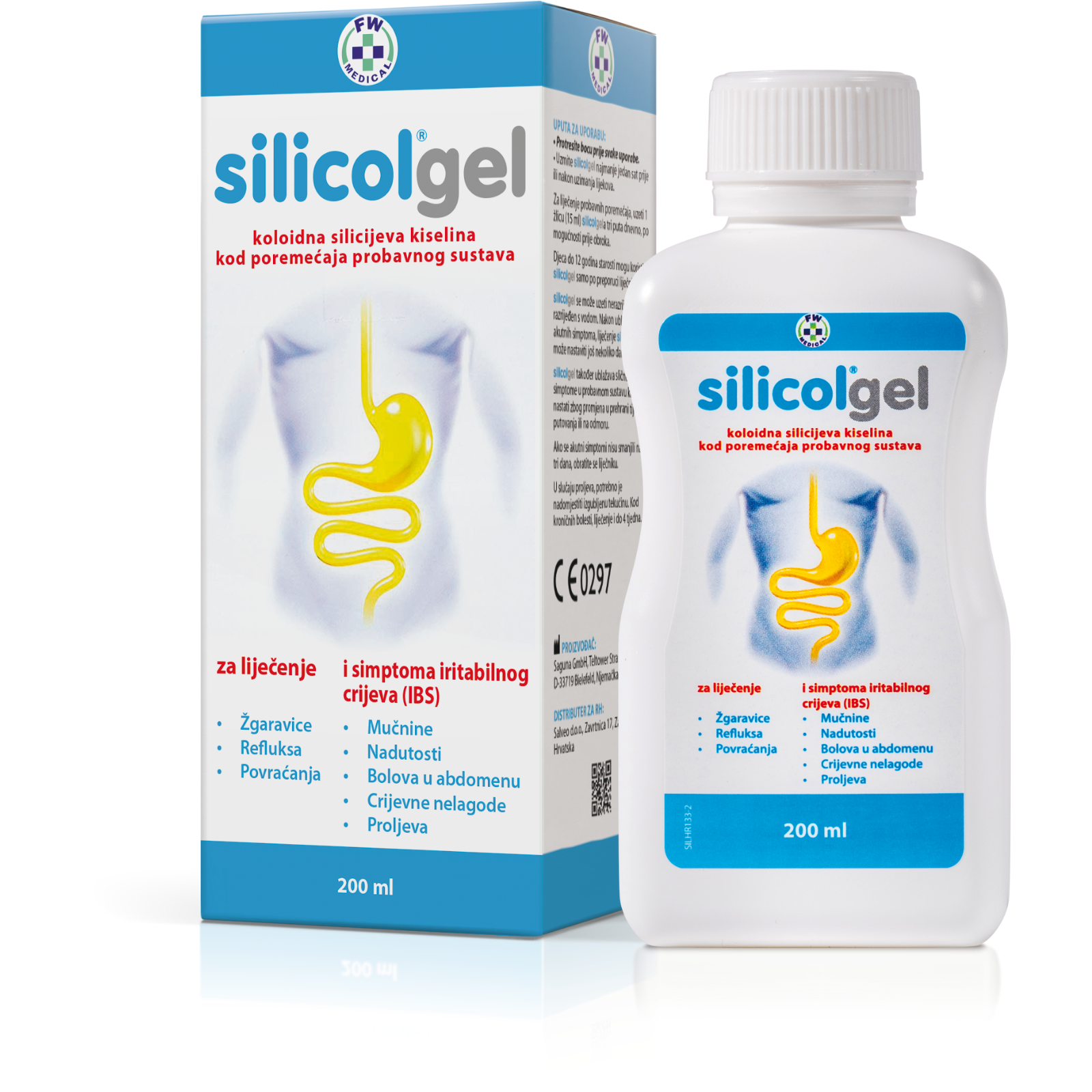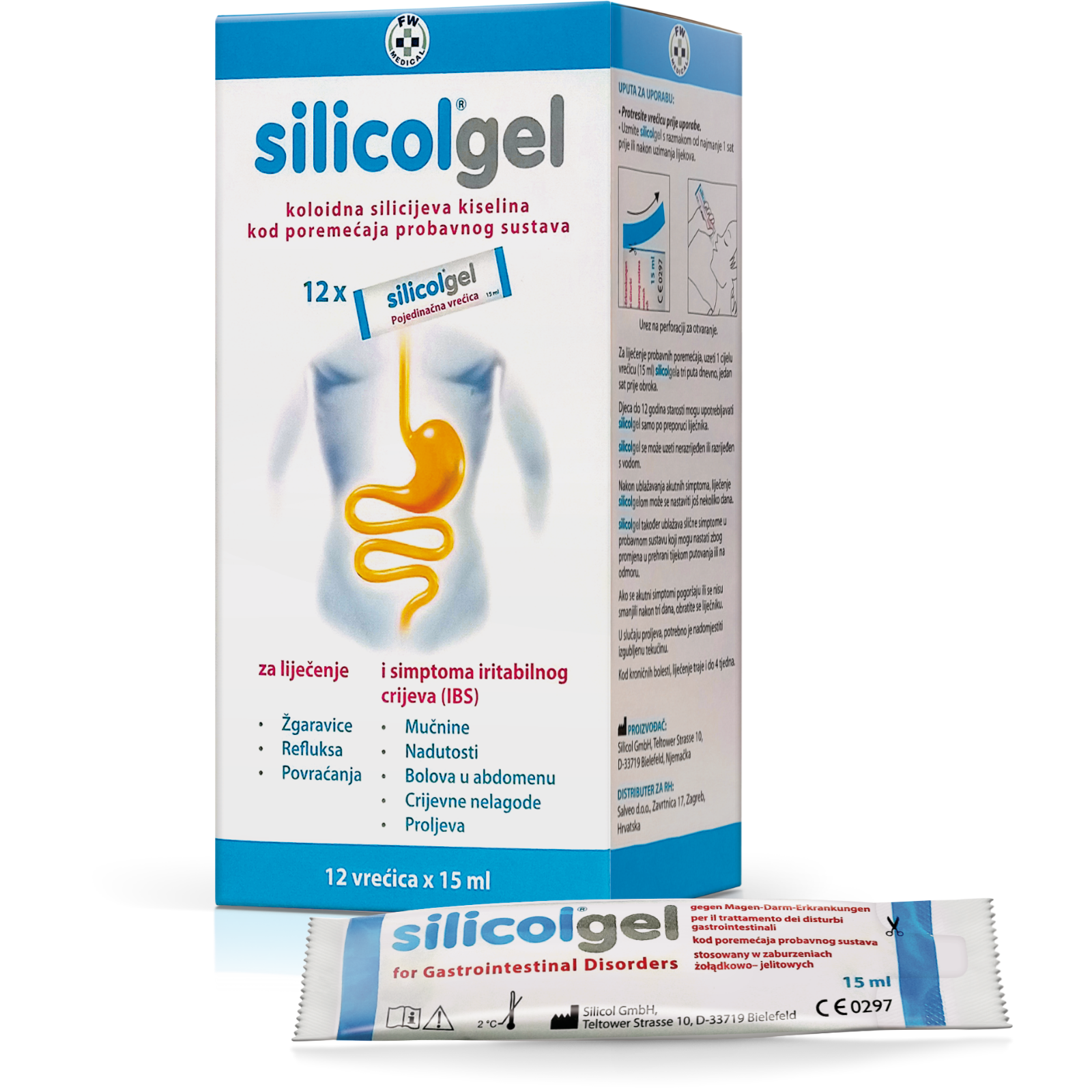 Silicol®gel sadrži koloidnu silicijevu kiselinu za liječenje probavnih poremećaja kao što su žgaravica, refluks, povraćanje, mučnina, nadutost, bolovi u trbuhu, nelagoda i proljev.